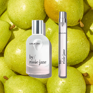 the JUICIEST PEAR. an effortless blend of pear, sweet jasmine, tangerine, and freshly cut grass. light, floral, and clean, LEILA LOU is perfect for everyday. inspired by spring mornings, blue skies, and your favorite blue jeans.